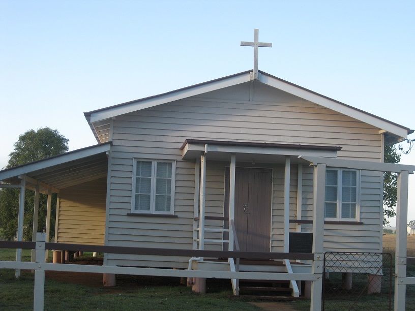 The former Sacred Heart Catholic Church, Durong has closed, and the property has been sold (2024). The church had been part of the Murgon Parish and the Diocese of Brisbane. The church began about 1927, with Mass being celebrated in private homes until the present church building was opened by Archbishop Patrick O'Donnell on 6/3/1966. The church building was self funded, and built by volunteer labour, on land donated by Mr Robert Bond. On Sunday 11/9/2016 the church celebrated its 50th anniversary, with a special service attended by the Archbishop of Brisbane, Mark Coleridge. More historical information/photographs of the former church/congregation are invited. Photographs uploaded 27/10/2016 & 28/12/2025..