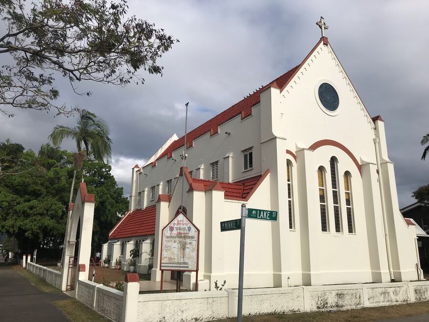 The St John the Evangelist Anglican Church, Cairins is a Ministry Unit of the Diocese of North Queensland. The present church building was dedicated on 23/1/1927, and is the oldest church building in Cairns. It replaced an earlier wooden structure in Abbott Street, which was destroyed by a cyclone in 1920. More historical information/photographs of the church/congregation are invited. Photographs uploaded 9/11/2025.
