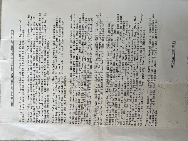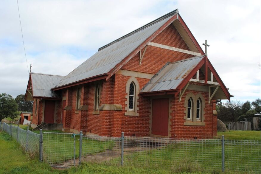 The former St Mary's Catholic Church, Timor has closed, and the property has been listed for sale (2014?). The church had been in the Parish of Maryborough and the Diocese of Ballarat. The present church building was erected/opened about 1930. It was erected on land donated by the Du Bourg Brothers, and replaced an erarlier wooden structure nearby. The church was built using some voluntary labour, although when completed had incurred a debt of 1,500 pounds. Through regular social events, organised by a dedicated committee, over the next two years, the debt was extinguished. More historical information/photographs of the former church/congregation are invited. Photographs uploaded 24/2/2026.