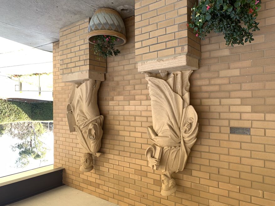 Foundation Stone Notes: | A plaque records: To the Glory of God - and under the Patronage of - Saints Peter and Paul - This church was consecrated by - The Most Rev T V Cahill DD Ph D CBE - Archbishop of Canberra and Goulburn - November, 27th 1977 ~ Rev John P Kelly PP. A plaque records: These statues of the Apostles Peter and Paul - were commissioned by Archbishop Duhig - from sculptor William Prout for - St Mary's Church, Maryborough, Queensland, in 1936 - through the initative of - Father Parker Moloney of St Augustine's Farrer - They were presented by Father Guildford Lyons - and his Maryborough Parishioners - to this church of Ss Peter and Paul 1980. |