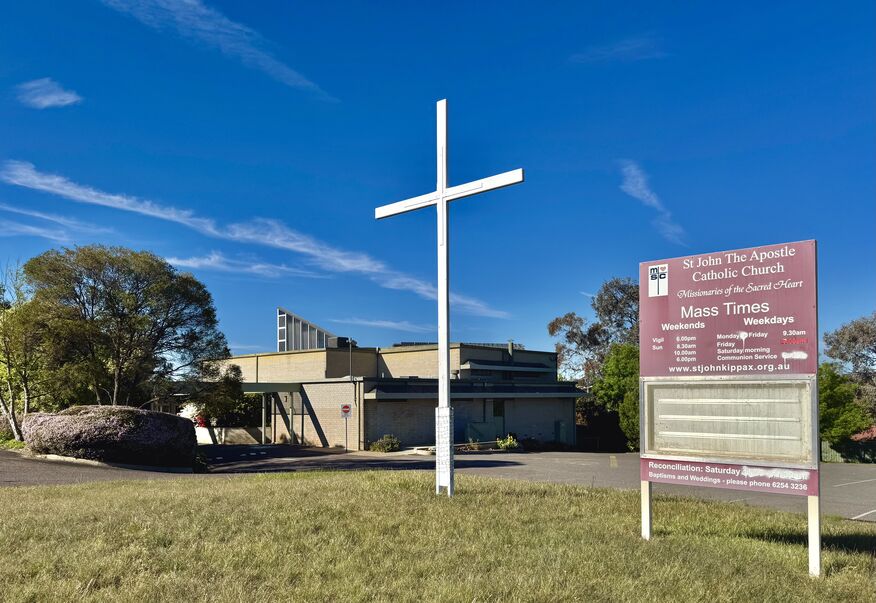 The St John the Apostle Catholic Church, Holt is part of the Kippax/St John the Apostle Parish and the Archdiocese of Canberra & Goulburn. The parish was commissioned on 26/2/1972, and entrusted to the Missionaries of the Sacred Heart. The church building was erected about 1975. No other details are known. More historical information/photographs of the church/congregation are invited. Photographs uploaded 28/10/2025.