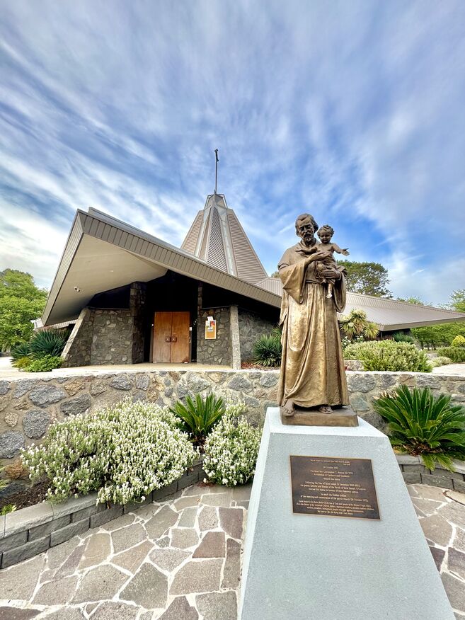 | Foundation Stone Notes: | The foundation stone of the church-school dedicated to St Joseph was laid on 18/9/1955 by Apostolic Delegate Archbishop Carboni. The text on the foundation stone is not known. Information/photographs are invited. A plaque below the statue of St Joseph records: 'Ite ad Ioseph et, quidquid ipse vobis dixerit. facite.' - Gen 41.55.- 28 October 2022 - THe Most Rev Christopher C Prowse DD STD - Archbishop of Canberra and Goulburn - blessed this statue. - Following the Year of Saint Joseph (8 December 2020-2021), - the pastor, faithful and friends of the Parish of Saint Joseph, O'Connor, - erected this statue in honour of their heavenly patron - to mark the Golden Jubilee - of the opening and consecratopn of the parish church (28 October 1973) - Saint Joseph is the foster-father of the Son of God and spouse of the Blessed Virgin Mary. - He is the Patron of the Universal Church, fathers, expectant mothers, families, unborn children, - workers, travellers, immigrants, people who fight against communism, - the interior life, the dying and a holy death. |