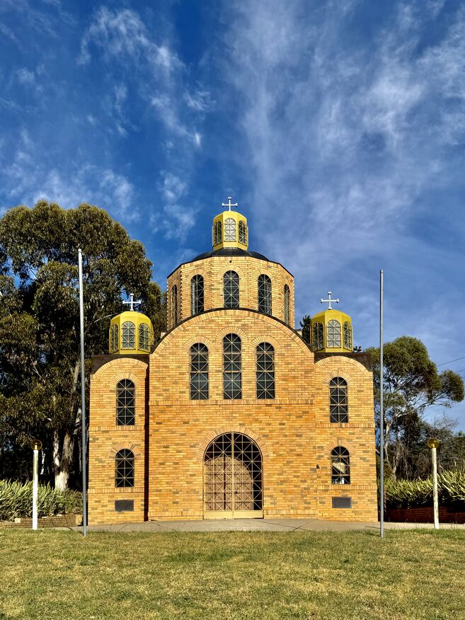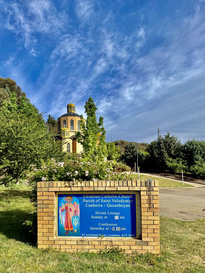 The Ukrainian Catholic Church of St Volodymyr, Lyneham is in the Parish of St Volodymyr in the Eparchy of Sts Peter and Paul of Melbourne for Ukrianian Catholics in Australia, New Zealand and Oceania, within the territory of the Catholic Archdiocese of Canberra & Goulburn. From 1972, the congregation had worshipped in a chapel in a private home, which also served as the presbytery. The genesis of the present church began in 1973, when Patriarch Cardinal Joseph Slipyj visited Australia, and after visiting Ukrainian Catholic parishes throughout Australia decided that the national capital of Australia should have a Ukrainian Catholic Church and centre to represent the Ukrainian people. A church building fund was established, supported by Ukrainians from all parishes in Australia. The church building was erected and opened on 16/12/1983, and consecrated on the feast day of St Volodymyr the 28/7/1991 [Sourced from: https://pilgrimsofhope.catholic.org.au/site/st-volodymyrs-church/#]. More historical information/photographs of the church/congregation are invited. Photographs uploaded 15/11/2025.