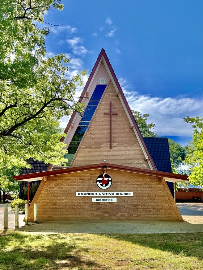 The O'Connor Uniting Church, is part of the Canberra Region Presbytery and the Uniting Church Synod of NSW & ACT. The church began in 1953 as a church plant of the Reid Methodist Church, first meetings being held in a private home and then in a church hall. By the early 1960s the hall was too small, and in April 1966 a new church building was opened. The church became part of the Uniting Church in 1977, and by the late 1970s was known as a 'leading charismatic church'. An increase in the size of the congregation led to its worship services being relocated to the Lyneham High School hall. In 1990 the church services were moved to Merici College, Braddon. Over many years there had been many difficulties between the church and Presbytery, with some taking the view that they should leave the Uniting Church, and join Grace Christian Mnistries. About this time, March 1994, the dissenting group (ie those wishing to remain in the UC), began again to hold their services in the church building. More historical information/photographs of the church/congregation are invited. Photographs uploaded 15/11/2025.
