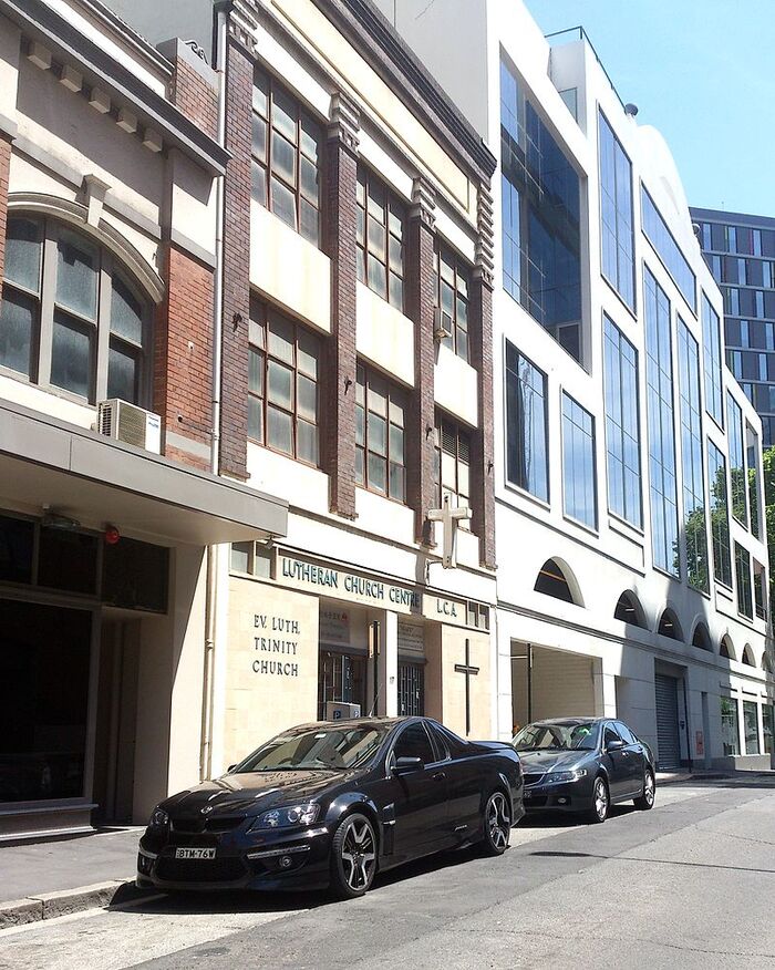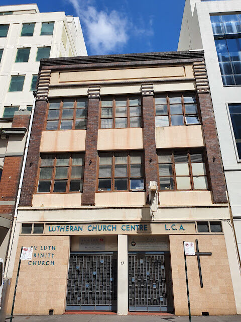 The former Trinity Lutheran Church, Haymarket was part of the Lutheran Church of Australia, NSW & ACT District. The church began at this site about 1958, and functioned on the ground floor, with community/commercial office space on the two upper levels. The building was sold in 2017 and the church closed about 1923. No other details are known. More historical information/photographs of the former church/congregation are invited. Photographs uploaded 17/4/2023 & 3/11/2025.