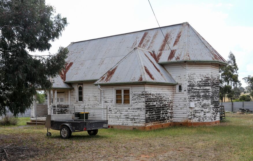 The former St Augustine's Anglican Church, Merrygoen has closed, and the property has been sold (2006?). The church had been part of the Diocese of Bathurst. The church building had been erected about 1935. No other details are known. More historical information/photographs of the former church/congregation are invited. Photographs uploaded 28/10/2025