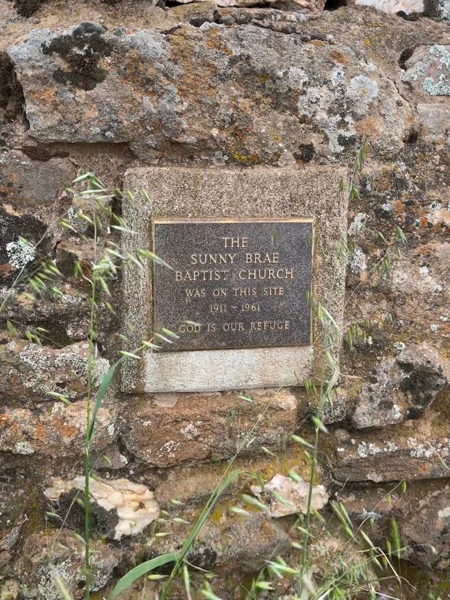 | Foundation Stone Notes: | A plaque at the site records: The - Sunny Brae - Baptist Church - was on this site - 1911 ~ 1961 - God is our refuge. |
