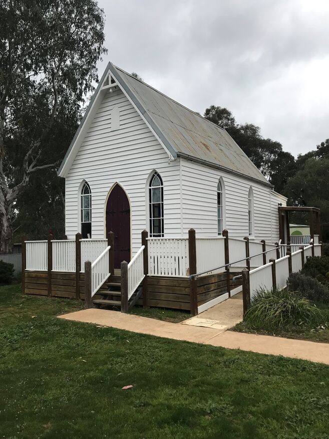 The All Saints Anglican Church, Newstead is part of the Maldon and Newstead Parish of the Diocese of Bendigo. The church building was erected about 1868. The Sunday School Hall was bought from the Baptist Church very early in the 1900s and moved to its present site. It was previously located on the corner of Hiliers Street and Lyons Road, and used as the Baptist Church building. No other details are known. More historical information/photographs of the church/congregation are invited. Photograph uploaded 30/9/2019.