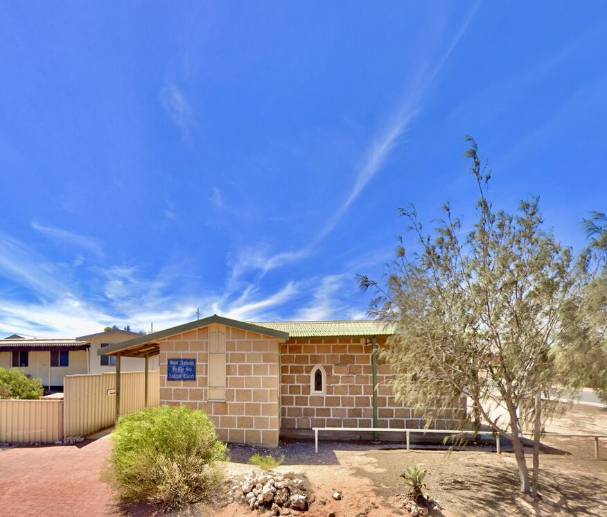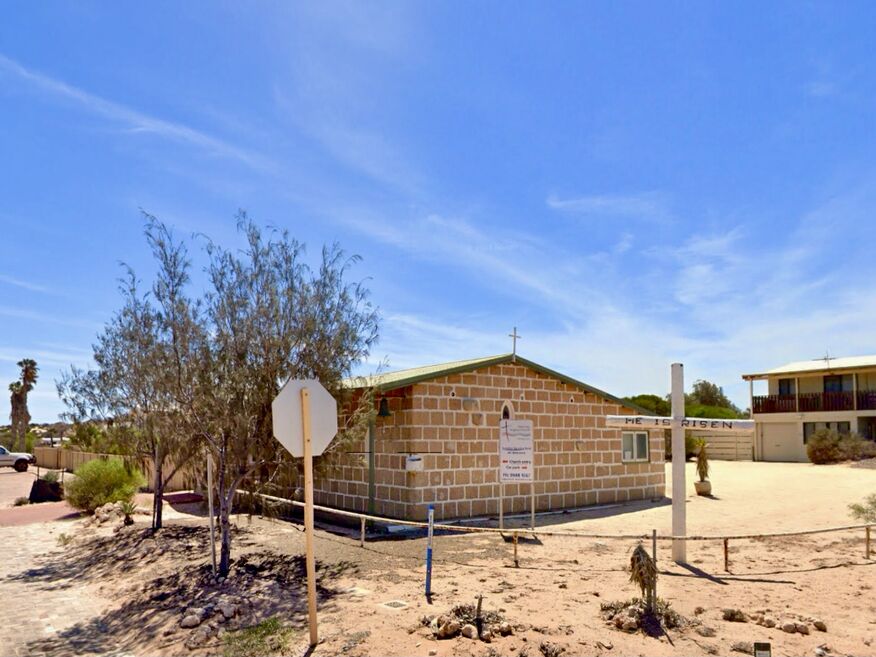 The St Andrew's-by-the-Sea Anglican Church, Denham is in the Parish of Shark Bay and part of the Diocese of North West Australia. The present church building was built out of coquina shell block quarried at neaby Hamlin. The funding of the construction came from the 'League of Help' an English organisation committed to building churches overseas. The church building was opened and consecrated on 6/6/1954 by Bishop Frewer. A vestry was added in 1966, which was dedicated on 31/7/1966 by Bishop Howell. The building is also used by other Christian denominations. More historical information/photographs of the church/congregation are invited. Photographs uploaded 22/11/2025.